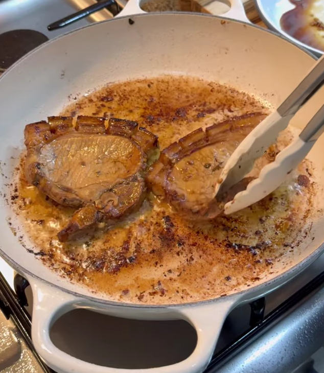 - Drain pork and pan-fry 2-3 minutes per side until nicely seared and cooked through.